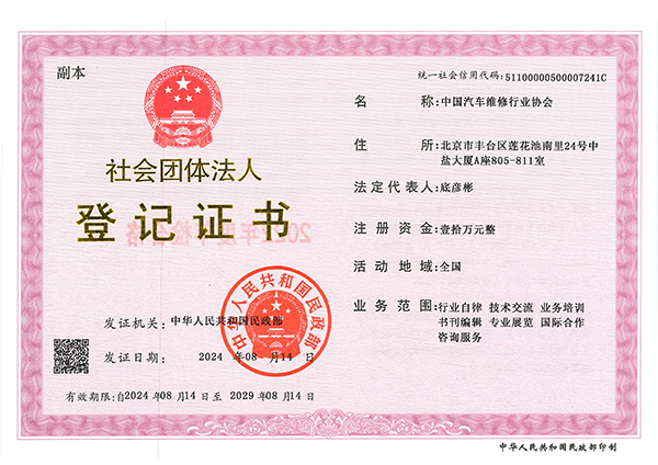 China Automotive Maintenance and Repair Trade Association , hereafter referred to as CAMRA, is approved by and registered with the Ministry of Civil Affairs of the People’s Republic of China and in the charge of Ministry of Transport of the People’s Republic of China. It is the only national automotive maintenance and repair trade association with legal personality legally established by enterprises, institutions, groups and individuals going in for automotive maintenance and repair, detecting test of automotive and related industries within the territory of China on the basis of the principles of equality and voluntary. This association is also a non-profit social group.