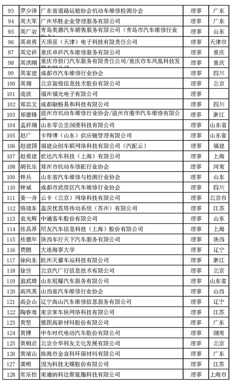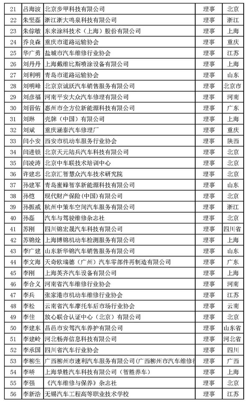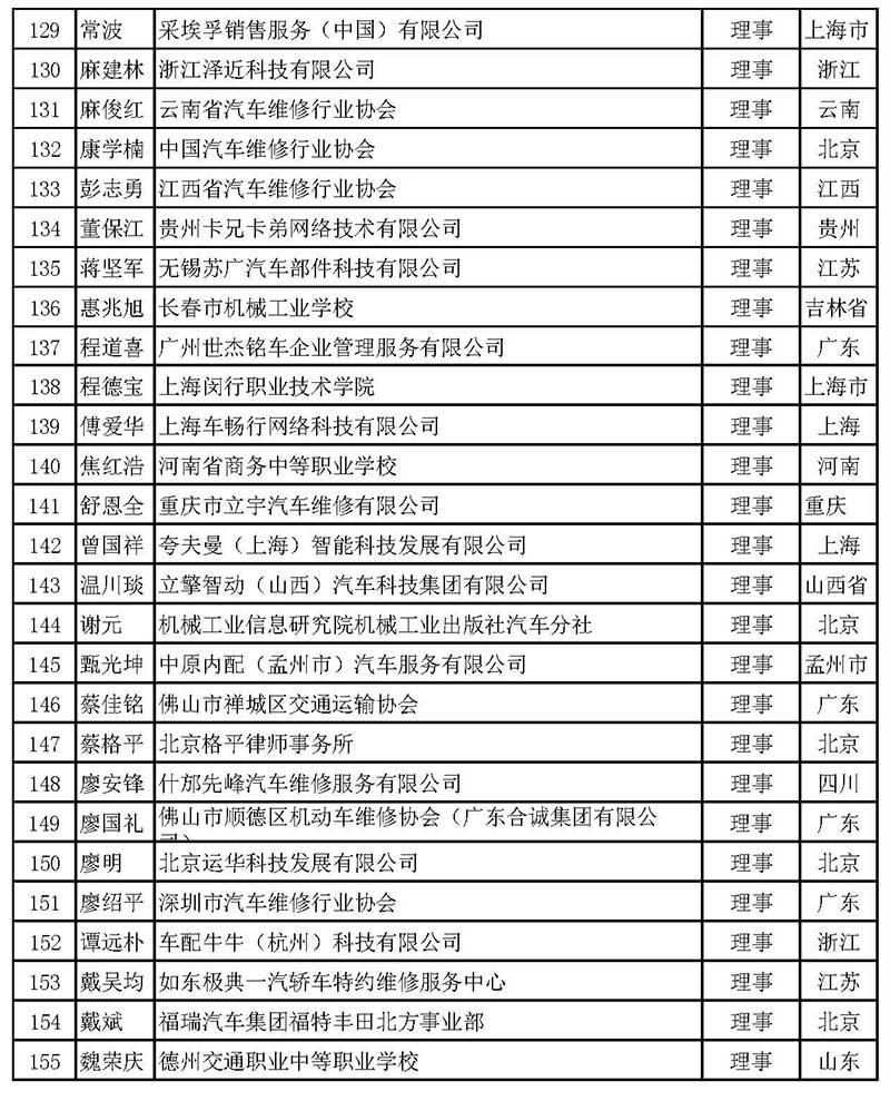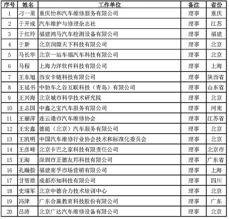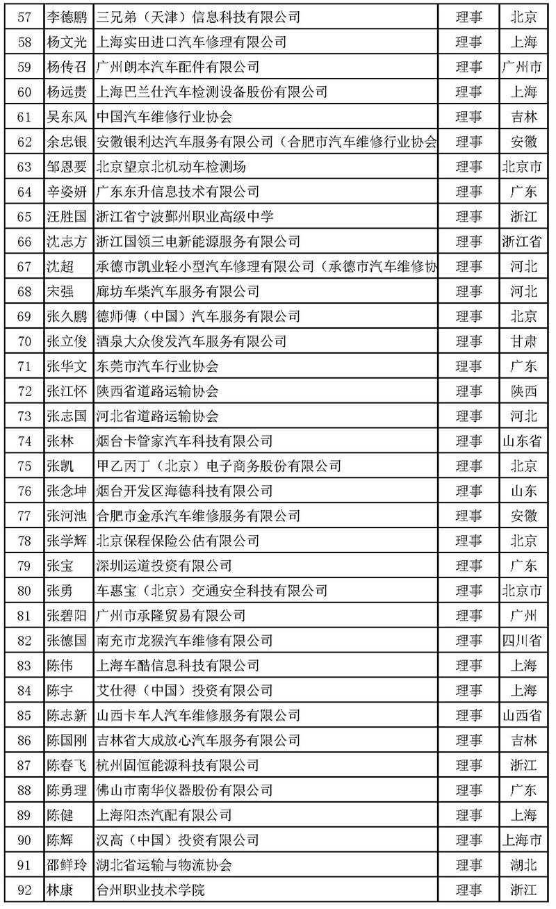 中國汽車維修行業(yè)協(xié)會(huì)第五屆理事會(huì)理事名單