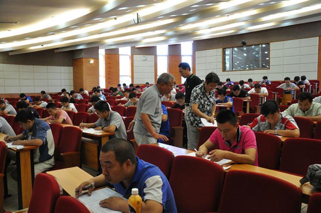 北京賽區(qū)理論考試監(jiān)考人員核對選手身份