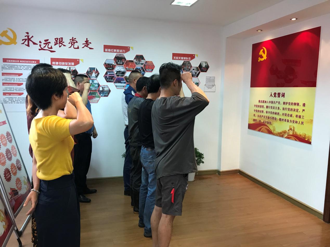 全體黨員在陳書記的帶領(lǐng)下,參觀了企業(yè)黨建展廳。展廳墻上的展板展現(xiàn)了中國共產(chǎn)黨黨史、企業(yè)發(fā)展史、企業(yè)黨建工作歷程、黨員先進(jìn)工作者等內(nèi)容。黨員們在展板前邊參觀邊感慨中國共產(chǎn)黨之偉大、企業(yè)創(chuàng)業(yè)之艱辛,有些同志甚至激動萬分不禁潸然淚下。