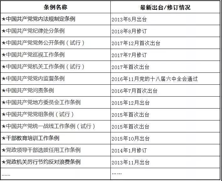 黨的十八大以來,出臺或修訂的“條例”很多,如:
