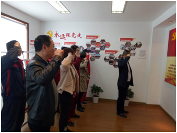 在活動(dòng)現(xiàn)場(chǎng),支部組織委員馬學(xué)星為一季度入黨的黨員陳國(guó)慶同志贈(zèng)送“政治生日”賀卡,賀卡上面寫(xiě)著入黨誓詞、黨員的姓名和入黨時(shí)間,還有黨組織的溫情寄語(yǔ)……全體黨員鼓掌表示祝賀。隨后由陳國(guó)慶作為支部書(shū)記領(lǐng)誓,全體黨員重溫入黨誓詞。黨員們面對(duì)黨旗,高舉右手,緊握拳頭,再一次在黨旗下接受心靈凈化和精神的洗禮。接著,陳書(shū)記分享了自身的入黨經(jīng)歷和感言,并提出幾點(diǎn)意見(jiàn)與大家共勉:一是強(qiáng)化黨員爭(zhēng)先;二是強(qiáng)化文化素養(yǎng);三是強(qiáng)化凝心聚力;四是強(qiáng)化責(zé)任擔(dān)當(dāng);五是強(qiáng)化創(chuàng)新實(shí)踐。