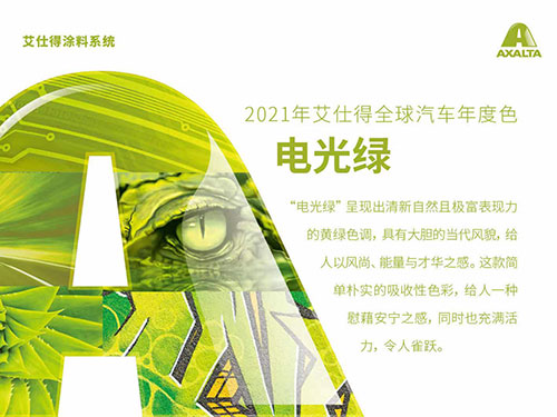 (2021年1月13日——費城訊)全球領先的液體和粉末涂料供應商艾仕得(紐交所代碼:AXTA)發(fā)布其2021年全球汽車年度色——“電光綠”。