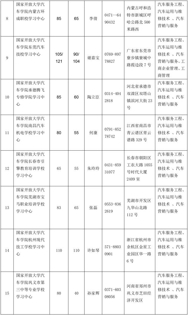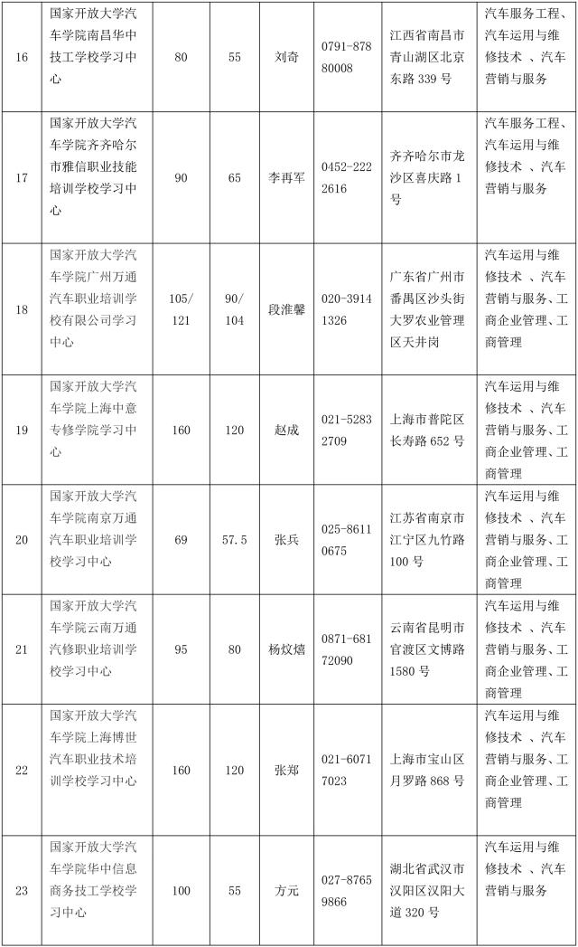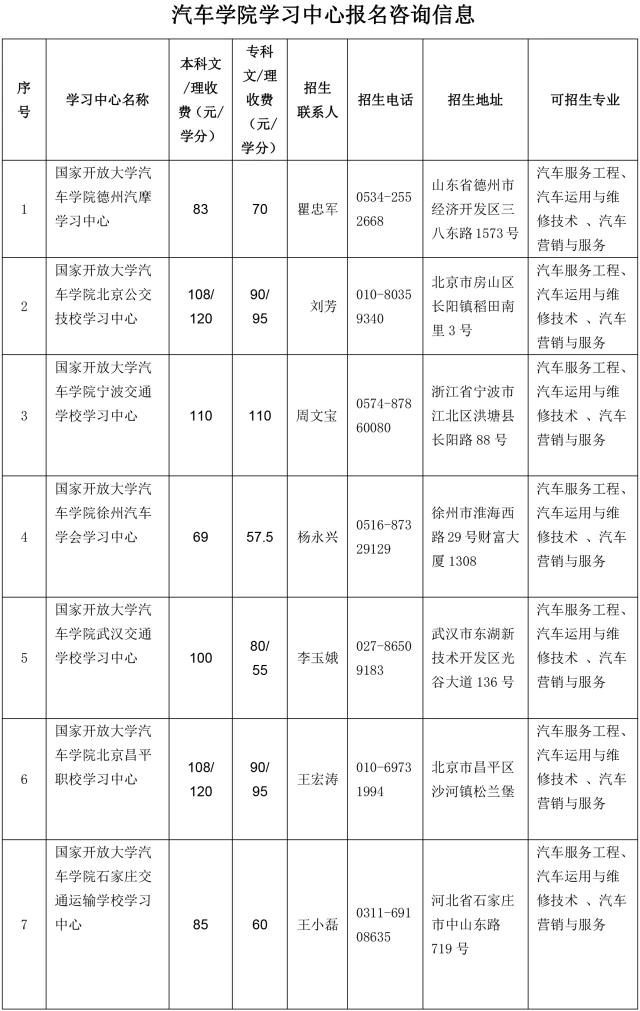 注:工商企業(yè)管理、工商管理專業(yè)僅限于部分學習中心可招,詳見《汽車學院學習中心報名咨詢信息》表。