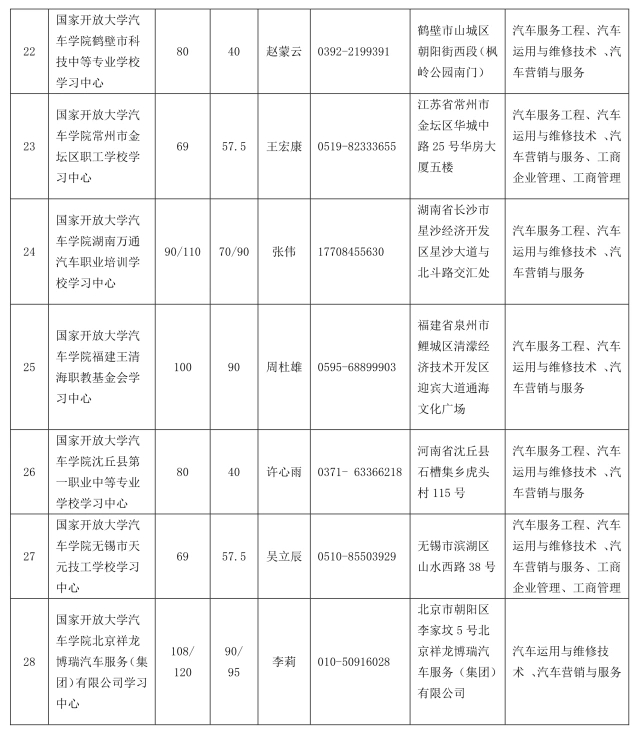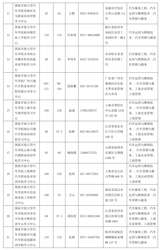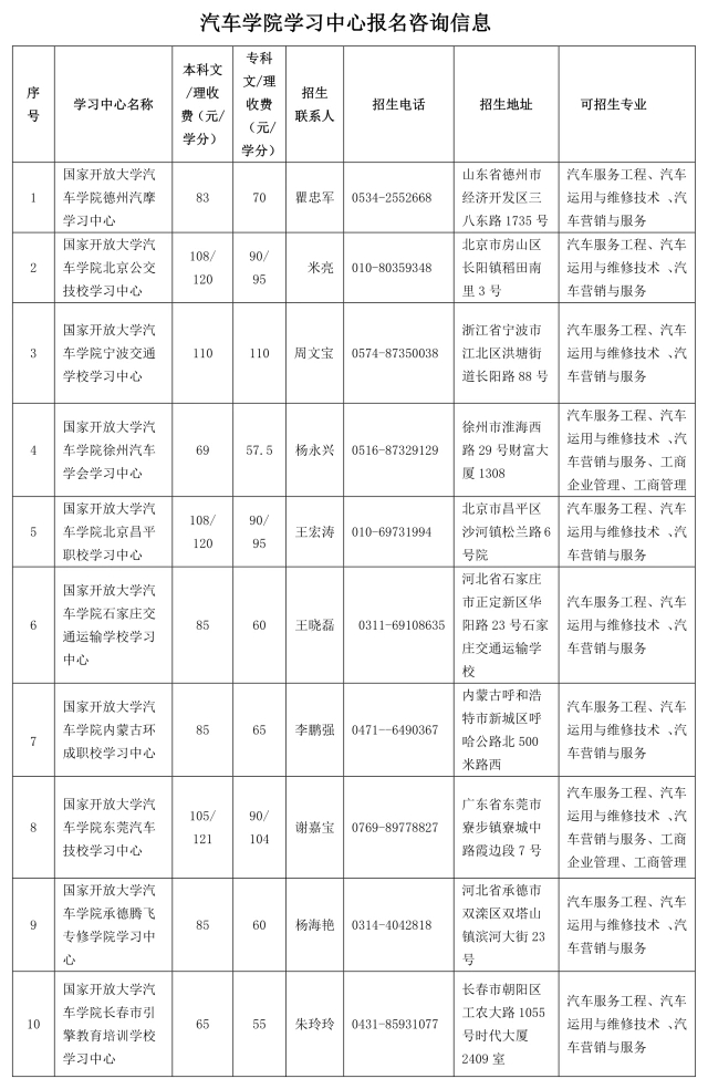 注:工商企業(yè)管理、工商管理專業(yè)僅限于部分學習中心可招,詳見《汽車學院學習中心報名咨詢信息》表。
