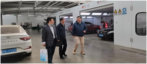 調(diào)研座談會上, 協(xié)會領(lǐng)導(dǎo)詳細(xì)了解銀建汽修的企業(yè)情況,就如何發(fā)揮協(xié)會引領(lǐng)作用,助力行業(yè)發(fā)展新格局進(jìn)行交流。期間,總經(jīng)理康凱陪同協(xié)會會長張延華、秘書處副主任馮延坤到銀建汽修的榮譽室、鈑噴車間、維修車間等地進(jìn)行實地參觀。