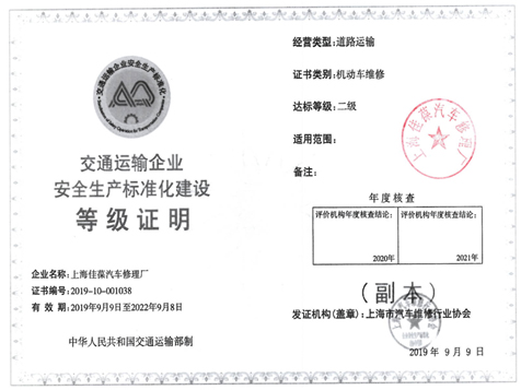 上海佳葆汽車修理廠是崇明區(qū)汽修行業(yè)協(xié)會的會長單位,坐落于崇明工業(yè)園區(qū),我廠經(jīng)過多年潛心經(jīng)營,迅速成為本地經(jīng)營規(guī)模最大的綜合類汽車維修龍頭企業(yè)。2009年至今我廠在上海市機動車維修質(zhì)量信譽考核中,連續(xù)獲得“AAA”級企業(yè),并先后獲得上海市交通運輸和港口管理局頒發(fā)的“學雷鋒優(yōu)質(zhì)服務(wù)團隊”、上海市城鄉(xiāng)建設(shè)和交通工作委員會頒發(fā)的“上海世博交通保暢先鋒”。2011年至今連續(xù)榮獲全國汽車維修行業(yè)誠信企業(yè)。2016年11月我廠率先安裝改造VOCs處理系統(tǒng),并完成環(huán)境影響評估報告。2017年3月獲得上海市崇明區(qū)環(huán)境保護局關(guān)于上海佳葆汽車修理廠技術(shù)改造項目竣工環(huán)境保護驗收審批意見的首個政府批文。