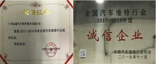 榮獲 2017-2018年度全國汽車維修行業(yè)誠信企業(yè)