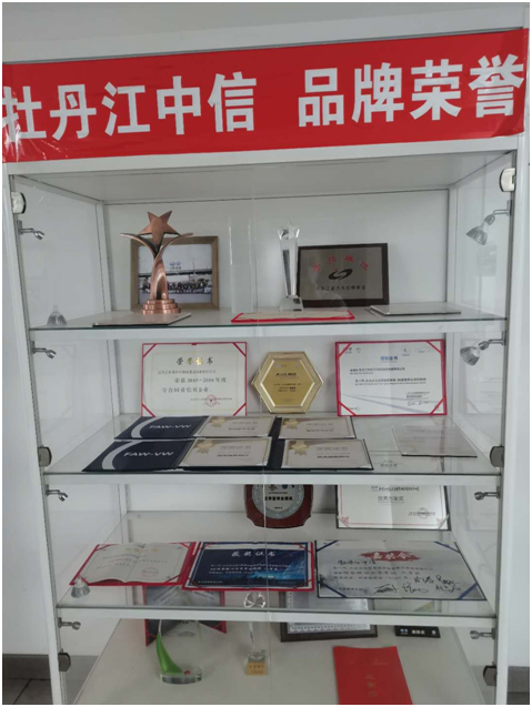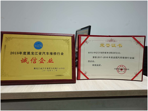 牡丹江中信汽車銷售服務(wù)有限責(zé)任公司是黑龍江省汽車維修與檢測(cè)行業(yè)會(huì)員單位。2009-2010年度、2011-2012年度、2013-2014年度、2015-2016年度、2017-2018年度、2019-2020年度、連續(xù)六屆被評(píng)為“全國(guó)汽車維修誠(chéng)信企業(yè)”、2018年度“黑龍江省汽車維修行業(yè)誠(chéng)信企業(yè)”。