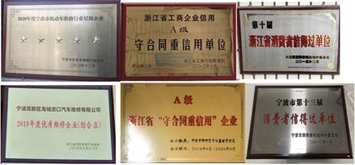 公司自成立以來,曾連續(xù)獲得“A級(jí)浙江省“守合同重信用”企業(yè)、浙江省/寧波市機(jī)動(dòng)車維修行業(yè)服務(wù)質(zhì)量規(guī)范達(dá)標(biāo)單位、優(yōu)秀維修企業(yè)(綜合店)、寧波市/區(qū)誠(chéng)信企業(yè)、浙江省/寧波市消費(fèi)者信得過單位、寧波市道路運(yùn)輸維修企業(yè)信用考核AAA企業(yè)”等榮譽(yù)稱號(hào)。連續(xù)十年為寧波市市級(jí)行政事業(yè)單位公務(wù)車輛定點(diǎn)維修企業(yè),具有具有豐富的政務(wù)、商務(wù)用車服務(wù)經(jīng)驗(yàn)。大、小修汽車年維修總量在萬余臺(tái)以上,與寧波市內(nèi)和國(guó)內(nèi)多家大型企事業(yè)單位建立車輛服務(wù)業(yè)務(wù)關(guān)系,如:多家國(guó)有專業(yè)銀行、寧波市政府各單位、高新區(qū)管委會(huì)、中國(guó)電信、中國(guó)移動(dòng)、中國(guó)聯(lián)通、寧波市煙草、寧波工程學(xué)院等等。