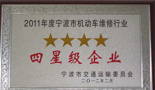 2011年度寧波市機(jī)動車維修行業(yè)四星級企業(yè)稱號;