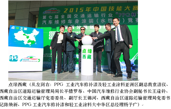 由西藏自治區(qū)交通運(yùn)輸廳主辦,西藏自治區(qū)道路運(yùn)輸管理局承辦,PPG工業(yè)龐貝捷漆油貿(mào)易(上海)有限公司和拉薩康奧汽車銷售服務(wù)有限公司協(xié)辦的2015年中國技能大賽—第七屆全國交通運(yùn)輸行業(yè)“PPG杯”汽車維修車身涂裝(水性漆)競賽西藏分賽于7月22~23日在西藏自治區(qū)道路運(yùn)輸管理局與拉薩康奧汽車銷售服務(wù)有限公司成功舉辦。這是交通運(yùn)輸行業(yè)首次對車身涂裝的單列競賽并全程使用環(huán)保綠色的水性色漆和低VOC高固涂料作為比賽用漆的國家一類賽事,更是首次在雪域高原西藏設(shè)立分賽場的國家級賽事,也是西藏首屆汽車維修行業(yè)職業(yè)技能競賽。