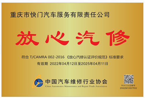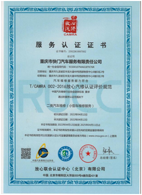 放心汽修認證證書