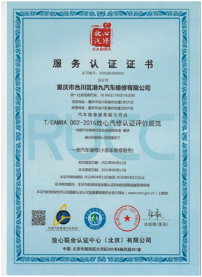 放心汽修認(rèn)證使我認(rèn)識(shí)到誠(chéng)信是公司發(fā)展的基礎(chǔ),責(zé)任是公司發(fā)展的根本使命,創(chuàng)新是公司發(fā)展的動(dòng)力源泉,放心汽修認(rèn)證和質(zhì)量管理體系認(rèn)證加強(qiáng)了合川港九汽修對(duì)管理的提升和質(zhì)量的保證。