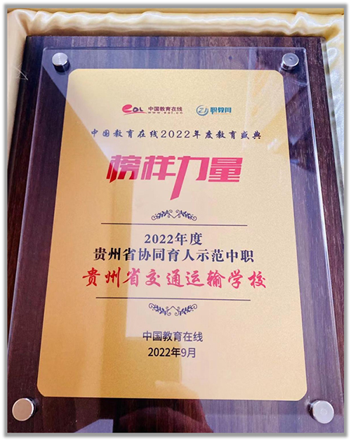 近日,中國教育在線“榜樣力量·2022年度教育盛典”評選獲獎名單揭曉,貴州省交通運輸學(xué)校榮獲“2022年度貴州省協(xié)同育人示范中職“榮譽(yù)稱號。