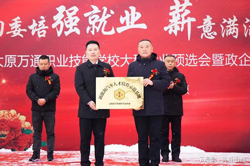 2月9日,“‘職’面未來,非你莫屬”太原萬通職業(yè)技能學(xué)校大型就業(yè)預(yù)選會暨“政企行校”簽約授牌活動在2023年新年第一場瑞雪飄飄中拉開序幕。