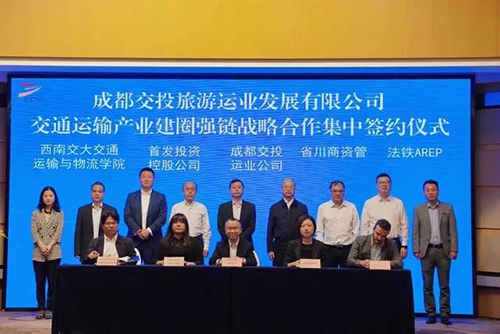 為聚焦產(chǎn)業(yè)建圈強(qiáng)鏈和智慧蓉城建設(shè),加快建設(shè)現(xiàn)代化交通運(yùn)輸產(chǎn)業(yè)體系,4月11日上午,在成都交投旅游運(yùn)業(yè)發(fā)展有限公司交通運(yùn)輸產(chǎn)業(yè)建圈強(qiáng)鏈戰(zhàn)略合作集中簽約儀式上,成都交投運(yùn)業(yè)攜手蜀道物流、西南交大等12家企業(yè)、高校、銀行,共同推進(jìn)建設(shè)現(xiàn)代化交通運(yùn)輸產(chǎn)業(yè)發(fā)展。