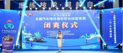 12月1日,2023年全國(guó)行業(yè)職業(yè)技能競(jìng)賽——“一汽-大眾捷達(dá)杯”全國(guó)汽車維修服務(wù)職業(yè)技能競(jìng)賽總決賽在位于廣州市增城區(qū)的廣州市技師學(xué)院科教城校區(qū)圓滿落下帷幕。我會(huì)張延華會(huì)長(zhǎng),交通運(yùn)輸部職業(yè)資格中心副主任孫海,廣東省人力資源和社會(huì)保障廳二級(jí)巡視員劉正讓,廣州市人力資源和社會(huì)保障局副局長(zhǎng)方寶城、職業(yè)能力建設(shè)處處長(zhǎng)張碧兒,廣州市機(jī)動(dòng)車維修與駕駛員培訓(xùn)行業(yè)管理處副處長(zhǎng)謝仙明等行業(yè)領(lǐng)導(dǎo)出席閉賽儀式,人力資源社會(huì)保障部中國(guó)就業(yè)培訓(xùn)技術(shù)指導(dǎo)中心有關(guān)負(fù)責(zé)人到會(huì)指導(dǎo)。出席儀式的還有國(guó)家開放大學(xué)汽車學(xué)院院長(zhǎng)熊先樹,廣州市技師學(xué)院黨委書記李明根,中國(guó)交通教育研究會(huì)職教分會(huì)副理事長(zhǎng)李怡民,北京開放大學(xué)副校長(zhǎng)王想年,天津開放大學(xué)副校長(zhǎng)劉志剛,廣州開放大學(xué)副校長(zhǎng)孫彬,兩位行業(yè)資深專家、大國(guó)工匠、競(jìng)賽總裁判長(zhǎng)魏俊強(qiáng)和副總裁判長(zhǎng)陶巍,我會(huì)副秘書長(zhǎng)底彥彬,我會(huì)教育培訓(xùn)工作委員會(huì)秘書長(zhǎng)、北京中德合力技術(shù)培訓(xùn)中心主任佘鏡懷,一汽-大眾捷達(dá)品牌公關(guān)總監(jiān)侯春昭等。