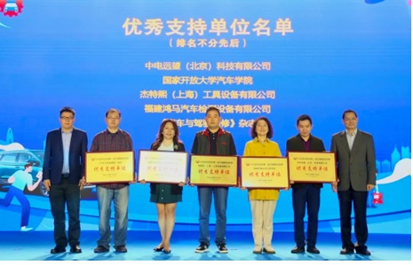 組委會(huì)授予國(guó)家開放大學(xué)汽車學(xué)院、杰特熙(上海)工具設(shè)備有限公司、福建鴻馬汽車檢測(cè)設(shè)備有限公司、中電遠(yuǎn)望(北京)科技有限公司、《汽車與駕駛維修》雜志社為優(yōu)秀支持單位