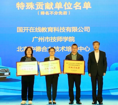 組委會(huì)授予國(guó)開在線教育科技有限公司、廣州市技師學(xué)院、北京中德合力技術(shù)培訓(xùn)中心為特殊貢獻(xiàn)單位