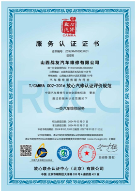 放心汽修認證證書