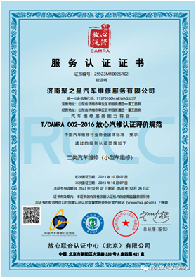 放心汽修認(rèn)證證書