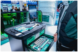 除了常規(guī)汽修工具車外,為適應(yīng)高端智能制造嚴(yán)格的工具管理需求,智能RFID工具車應(yīng)運(yùn)而生,擁有國(guó)內(nèi)領(lǐng)先的嵌入式芯片技術(shù)及最大每抽屜100件的工具容量,系統(tǒng)集成了扭矩測(cè)試模塊,實(shí)現(xiàn)了速度快、準(zhǔn)確率高的工具存取。