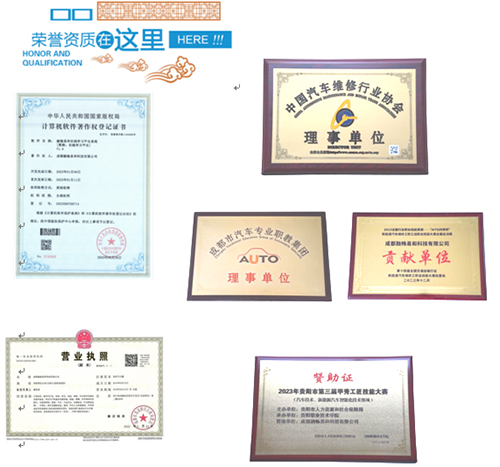累計(jì)獲得計(jì)算機(jī)軟件著作權(quán)登記證書33個(gè);貴陽(yáng)市工匠技能大賽贊助、新能源汽車維修工職業(yè)技能大賽貢獻(xiàn)單位;中國(guó)汽車維修行業(yè)協(xié)會(huì)理事單位、成都市汽車專業(yè)職業(yè)教育集團(tuán)理事單位稱號(hào);四川軟件行業(yè)協(xié)會(huì)會(huì)員單位等。