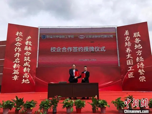 惠水縣人民政府副縣長(zhǎng)羅義說(shuō),黔南州中德技工學(xué)校作為惠水縣職業(yè)教育的重要組成部分,一直致力于培養(yǎng)高素質(zhì)的技術(shù)技能人才;比亞迪公司作為新能源汽車(chē)領(lǐng)域的領(lǐng)軍企業(yè),擁有先進(jìn)的技術(shù)和豐富的市場(chǎng)經(jīng)驗(yàn)。雙方攜手開(kāi)展校企合作,是優(yōu)勢(shì)互補(bǔ)、資源共享、互利共贏的重要舉措,也是推進(jìn)惠水縣職業(yè)教育與產(chǎn)業(yè)融合發(fā)展的具體行動(dòng),兩個(gè)實(shí)訓(xùn)基地也將為惠水新能源汽車(chē)產(chǎn)業(yè)的發(fā)展注入新的活力?;菟h政府將繼續(xù)加大對(duì)職業(yè)教育和新能源汽車(chē)產(chǎn)業(yè)的支持力度,為校企合作提供更多的政策保障和服務(wù)支持。