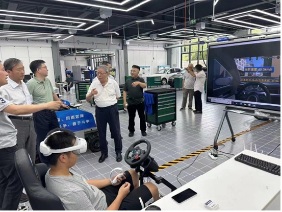張延華一行首先參觀了學(xué)院的教學(xué)環(huán)境和實訓(xùn)場地,聽取了李丕毅院長關(guān)于學(xué)校專業(yè)建設(shè)和人才培養(yǎng)情況的介紹,重點了解了智能網(wǎng)聯(lián)專業(yè)建設(shè)的全國領(lǐng)先優(yōu)勢,以及MR混合現(xiàn)實技術(shù)在教學(xué)實踐中的應(yīng)用。張延華對上海交職院汽車工程學(xué)院在教學(xué)、科研方面取得的不俗業(yè)績表示高度認(rèn)可,對其在產(chǎn)教融合方面取得的豐碩成果予以高度肯定。他希望協(xié)會和學(xué)校在產(chǎn)教融合、技能競賽、標(biāo)準(zhǔn)化等方面加強(qiáng)聯(lián)動,互相助力提升,也歡迎學(xué)院積極參與協(xié)會教育培訓(xùn)分會換屆工作,發(fā)揮重要作用。