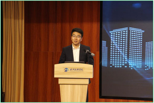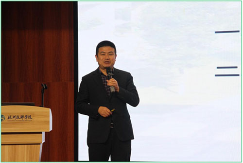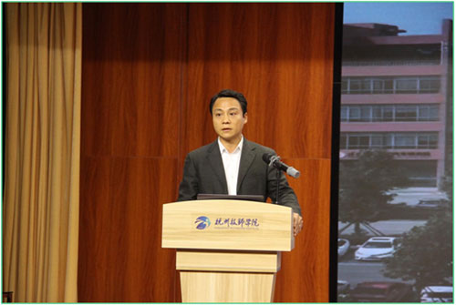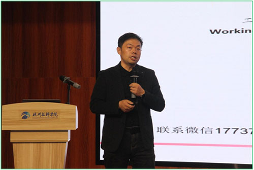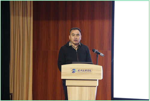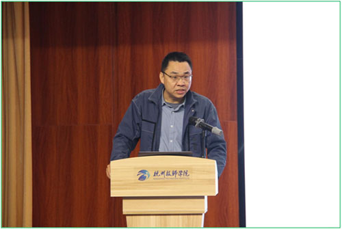 杭州技師學(xué)院副校長沐俊杰做《綠色維修人才培養(yǎng)的思考與實踐》主題發(fā)言,介紹了學(xué)校技能人才培養(yǎng)中面對綠色發(fā)展、新能源轉(zhuǎn)型挑戰(zhàn)的新思路以及產(chǎn)教融合新模式。