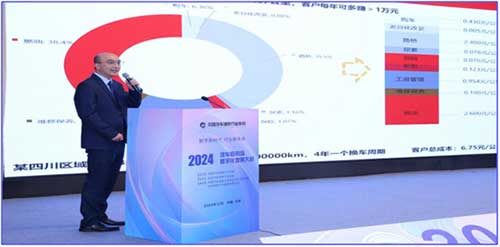 四川綠動工坊新能源科技有限公司董事長朱劍坤作了《數(shù)字化驅(qū)動新能源售后服務(wù)市場建設(shè)》的主題演講。