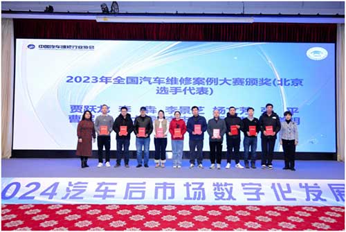大會期間,還舉行了2023全國汽車維修案例大賽北京地區(qū)獲獎選手代表頒獎儀式,中國汽車維修行業(yè)協(xié)會技術(shù)和標(biāo)準(zhǔn)化委員會常務(wù)副主任委員陳英、北京汽車維修行業(yè)協(xié)會副秘書長侯金鳳為獲獎選手代表頒獎。