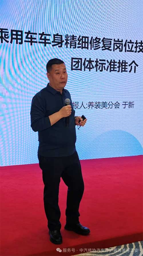 本次會(huì)議取得了一系列核心成果。養(yǎng)裝美分會(huì)秘書長于新推介了歷時(shí)半年編制的《乘用車車身精細(xì)修復(fù)崗位技能評(píng)定規(guī)范》團(tuán)體標(biāo)準(zhǔn)。該標(biāo)準(zhǔn)明確了車身修復(fù)從業(yè)者技能等級(jí)評(píng)定體系,填補(bǔ)行業(yè)人才評(píng)價(jià)空白,為服務(wù)標(biāo)準(zhǔn)化、專業(yè)化提供權(quán)威依據(jù)。會(huì)議還為天津中美漢大科技有限公司、喜多邦環(huán)保設(shè)備(安徽)有限公司、中馳車之谷互聯(lián)科技青島有限公司、山東柏謙國際供應(yīng)鏈管理有限公司、普蘭店區(qū)朱師傅汽車服務(wù)中心等 10 家單位授予新會(huì)員牌,進(jìn)一步擴(kuò)大行業(yè)協(xié)作網(wǎng)絡(luò),促進(jìn)資源整合與經(jīng)驗(yàn)共享。