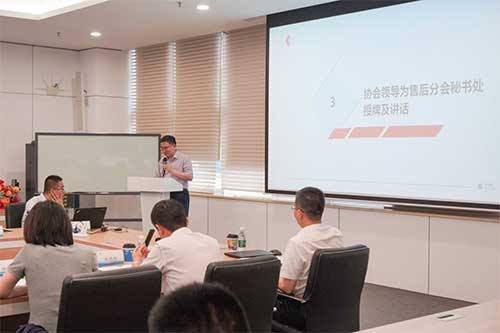 新當(dāng)選的售后分會(huì)會(huì)長(zhǎng)蓋方在會(huì)上發(fā)表了講話,他首先感謝會(huì)員單位一直以來(lái)對(duì)售后工委的大力支持,同時(shí)表示新一屆分會(huì)將在協(xié)會(huì)的領(lǐng)導(dǎo)和統(tǒng)一部署下,堅(jiān)定信心和決心,積極開(kāi)展各項(xiàng)活動(dòng),不斷創(chuàng)新工作方式方法,提高分會(huì)的影響力和凝聚力,為推動(dòng)行業(yè)的健康發(fā)展做出更大的貢獻(xiàn)。