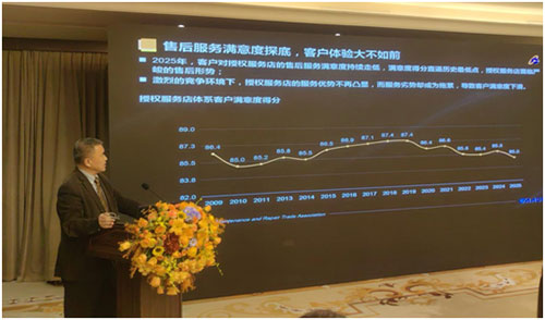 底彥彬致辭指出,經(jīng)過多年的努力和實踐,卡思調(diào)查已經(jīng)不僅僅是對“滿意度打分”,更是一個行業(yè)治理工具。它通過建立行業(yè)標準和權威科學測評,將“提升服務質(zhì)量”從一個口號,轉(zhuǎn)化為可衡量、可對標、可監(jiān)管的具體行動,最終目標是構建一個更透明、更高效、更讓消費者信任的汽車售后服務生態(tài)。他認為,汽車后市場也正處在一個機遇與挑戰(zhàn)并存的關鍵轉(zhuǎn)型期,卡思調(diào)查成為推動行業(yè)從“以車為中心”向“以用戶為中心”轉(zhuǎn)型的關鍵力量,它的作用、公信力和影響力比商業(yè)機構的報告更為權威和深遠,是一份對汽車后服務市場的權威年度報告,在行業(yè)、企業(yè)、消費者和政策層面都發(fā)揮著不可替代的關鍵作用。他強調(diào),卡斯調(diào)查作為一項年度調(diào)查,能夠進行長期追蹤和對比,不僅反映當下問題,更能揭示問題的演變趨勢。他期待卡思調(diào)查持續(xù)發(fā)揮“建立標準、反映現(xiàn)狀、引導改進”的核心作用,驅(qū)動整個汽車售后服務市場向更透明、更高效、更以用戶為中心方向發(fā)展,為交通強國、汽車強國建設再立新功。