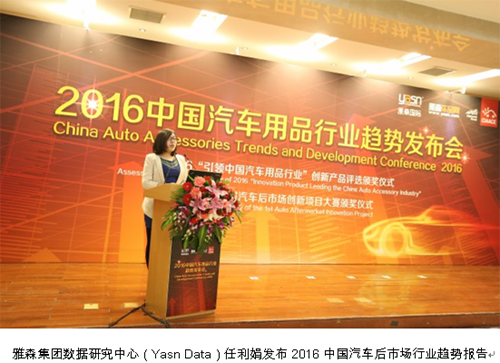 來自中國汽車流通協(xié)、中國汽車維修行業(yè)協(xié)會、全國工商聯(lián)汽車改裝專業(yè)委員會、中國汽車技術(shù)研究中心兒童安全乘車工作推進辦公室、中國標(biāo)準(zhǔn)化研究院的領(lǐng)導(dǎo)分別從行業(yè)新政、維修、改裝、兒童安全乘車以及行業(yè)標(biāo)準(zhǔn)化的角度對政府政策、市場現(xiàn)狀做了解讀。作為記錄中國汽車用品行業(yè)成長足跡和發(fā)展歷程的指向標(biāo),雅森數(shù)據(jù)中心在大會上發(fā)布的《2016中國汽車后市場行業(yè)趨勢報告》引起強烈熱議。