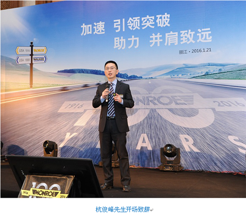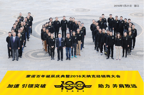 2016年1月21日,主題為“加速,引領(lǐng)突破;致力,并肩致遠(yuǎn)”的蒙諾100周年誕辰慶典暨2016年天納克中國(guó)經(jīng)銷(xiāo)商會(huì)議在麗江召開(kāi)。此次經(jīng)銷(xiāo)商大會(huì)備受天納克北美總部和全國(guó)廣大經(jīng)銷(xiāo)商的關(guān)注,天納克全球高級(jí)副總裁,后市場(chǎng)總裁Joseph Pomaranski、天納克副總裁兼中國(guó)售后市場(chǎng)總經(jīng)理杭俊峰先生攜中國(guó)售后市場(chǎng)團(tuán)隊(duì)和全國(guó)各地經(jīng)銷(xiāo)商伙伴共同出席了此次會(huì)議。
