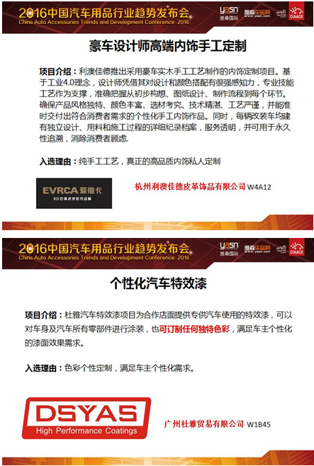據(jù)活動負(fù)責(zé)人介紹,為引領(lǐng)行業(yè)創(chuàng)新發(fā)展,尋找出汽車后市場真正的最新贏利創(chuàng)新項(xiàng)目,中國國際汽車用品展覽會組委會自2015年11月在全球范圍內(nèi)發(fā)起并策劃組織了2016年度汽車后市場創(chuàng)新項(xiàng)目大賽評選活動。該活動歷時3個月,首次采用網(wǎng)絡(luò)和微信投票入口,期間引爆整個行業(yè)圈子,報名項(xiàng)目高達(dá)100多個。經(jīng)過行業(yè)資深專家評委會歷時10天的審核和選拔, 40家項(xiàng)目獲得入圍評選資格。經(jīng)多輪審鑒,最終10家項(xiàng)目摘得“2016年度引領(lǐng)中國汽車用品行業(yè)項(xiàng)目創(chuàng)新獎”的桂冠。獲獎企業(yè)名單如下(排名不分先后):