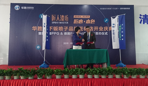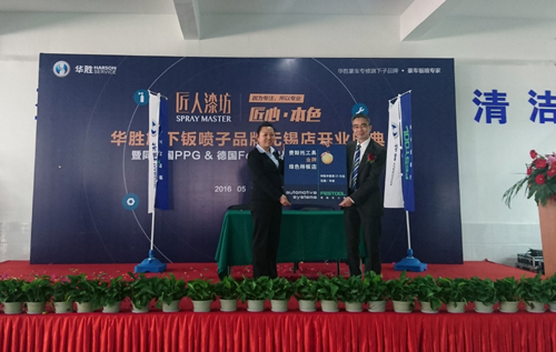 2016 年 5 月 10 日,華勝旗下品牌匠人漆坊無錫新區(qū)店迎來了盛大開業(yè)。在開業(yè)典禮上,華勝集團邀請到無錫市運管處、中國人民財產(chǎn)保險股份公司、太平洋保險公司、奧萊特汽車科技有限公司、PPG、費斯托工具的來賓蒞臨出席。