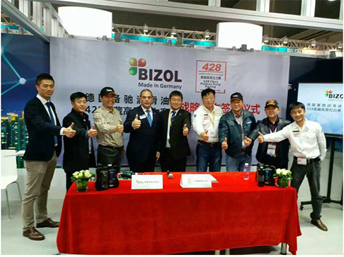2016年12月1日,上海,全球第二大法蘭克福品牌展覽會---2016上海法蘭克福汽配展德國備馳展臺,來自德國的備馳潤滑油與國內(nèi)頂級越野賽事—428青藏高原拉力賽在上海簽約合作,德國備馳全球市場總監(jiān)馬塞洛和中國車王盧寧軍代表合作雙方簽約并互致祝愿,中國汽車改裝用品協(xié)會河南分會白保民會長一行蒞會祝賀。司庫伯貿(mào)易(上海)有限公司總經(jīng)理慶巖先生,以其十多年的外貿(mào)工作嫻熟經(jīng)驗擔(dān)當(dāng)活動的主持和翻譯,引得在場嘉賓頻頻稱贊。