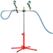 吹風(fēng)機(jī)能提供適當(dāng)?shù)目諝饬魉?,并可使外界空氣一同產(chǎn)生流動(dòng),在及時(shí)吹散聚集在涂層上面的飽和水蒸氣加快涂層干燥的同時(shí)節(jié)省壓縮空氣的使用量(圖1)。單處局部噴涂(小面積修補(bǔ))可用輕便小巧的手持式吹風(fēng)機(jī)(圖2);多處噴涂(大面積修補(bǔ)),則可用支架固定多個(gè)吹風(fēng)機(jī)(圖3)。