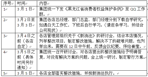 會(huì)議紀(jì)要:1、全員組織學(xué)習(xí)“新消法”制定學(xué)習(xí)計(jì)劃,針對(duì)自店情況,自檢不足,制定整改措施。