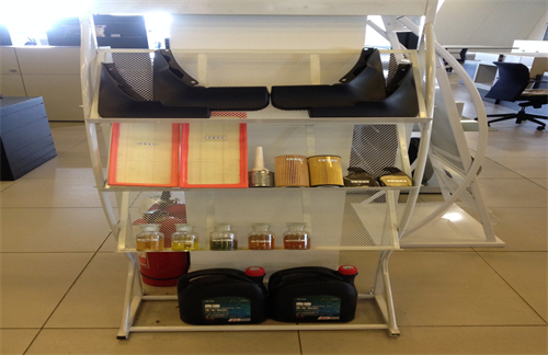 二、真假件展示。針對(duì)客戶在路邊店保養(yǎng)的風(fēng)險(xiǎn),增設(shè)真假件展示架,方便客戶準(zhǔn)確識(shí)別真假件。