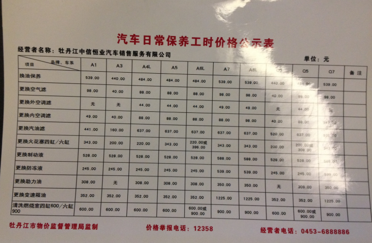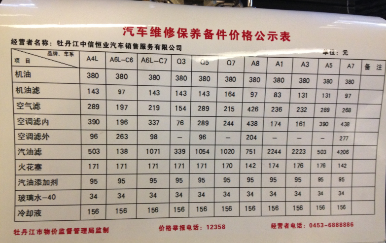 三、常用工時(shí)備件價(jià)格公示。執(zhí)行價(jià)格透明,價(jià)格公示的政策,維修工作開(kāi)始前與客戶確認(rèn)維修項(xiàng)目和預(yù)估金額,維修工作結(jié)束后,再次與客戶解釋已完成的維修項(xiàng)目和維修金額,讓客戶明明白白消費(fèi),高高興興消費(fèi)。