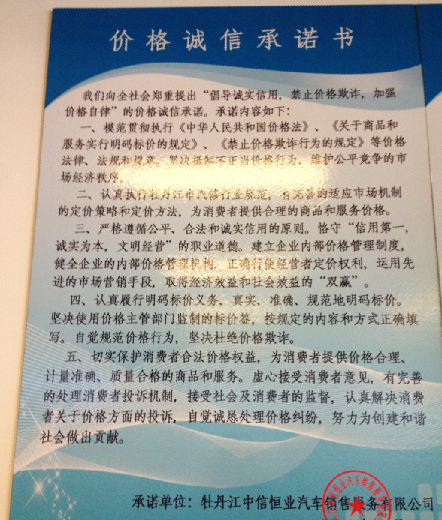四、價(jià)格誠(chéng)信承諾公示、價(jià)格投訴制度上墻公示。