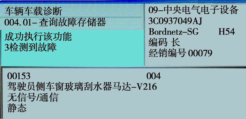 圖4 2009年產(chǎn)邁騰轎車刮水器控制系統(tǒng)通訊網(wǎng)絡