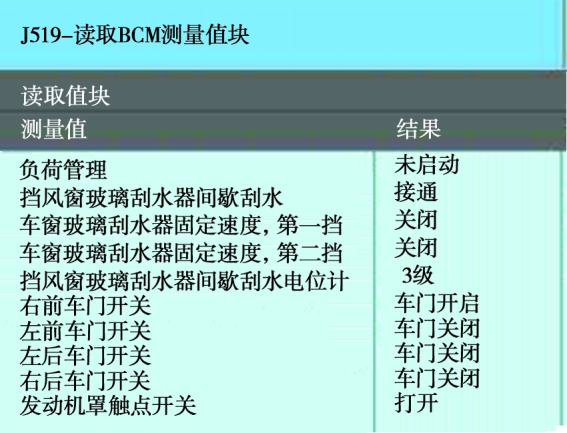 然而,由于車身控制模塊是一個“黑匣子”,維修人員從線路上是無法理清車身控制模塊輸入信號與輸出信號間的關(guān)系的(這些關(guān)系只能通過查閱相關(guān)技術(shù)資料才能理清),因此有時在故障診斷時,容易忽略某些輸入信號的作用,從而使故障診斷走很多彎路。以發(fā)動機室蓋接觸開關(guān)(F266)信號為例,為了防止刮水器損壞,在裝有F266的大眾車上,當J519檢測到發(fā)動機室蓋為打開狀態(tài)時,刮水器的工作將會受到限制,如部分速騰轎車在打開發(fā)動機室蓋時,刮水器各擋位均不工作,而部分寶來車在打開發(fā)動機室蓋時,刮水器只有間歇擋不工作。如果某車因F266信號錯誤而導致刮水器工作不正常,維修人員在忽略了F226信號作用的情況下進行故障診斷,將會走很多彎路。