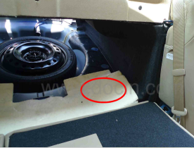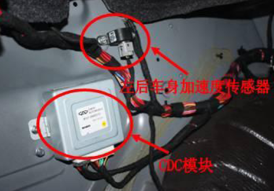圖3 瑞麒G6轎車左后車身垂直加速度傳感器和CDC懸架控制單元安裝位置