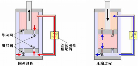 圖9 CDC懸架控制系統(tǒng)減振器的工作原理